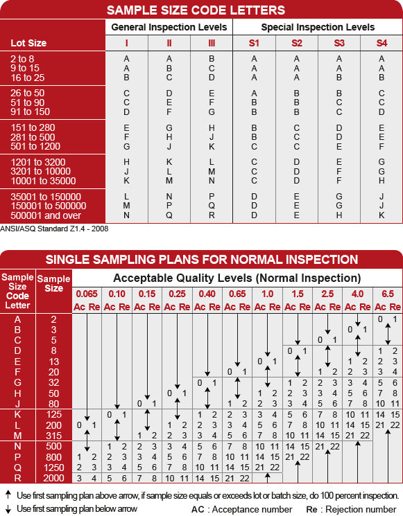 We exclusively use ISO 2859 tables to measure AQL. These tables are a United States standard with equivalents in all national and international standardization organizations (ANSI/ASQC Z1.4, NF06-022, BS 6001, DIN 40080).